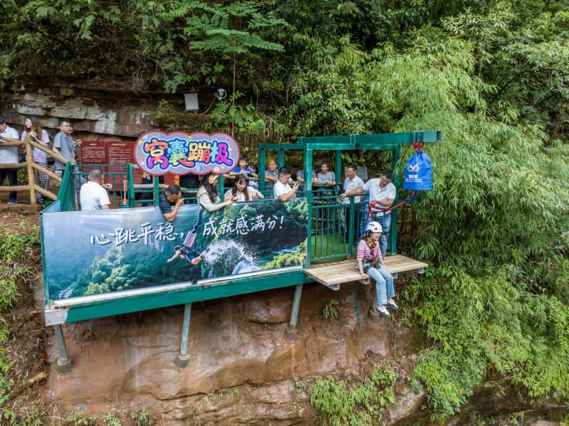 “窝囊”蹦极:和传统高空蹦极不同,低空弹跳主打“温柔”,没有急速下坠的强烈冲击,反而能慢慢感受山间清风,怕高的人、亲子家庭都能大胆尝试。